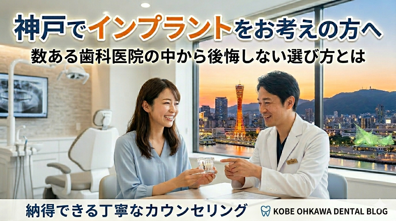 このページでは、神戸でインプラントの治療を検討している方に向けて、後悔しないインプラント歯科医院の選び方を7つのポイントに分けてお伝えします。